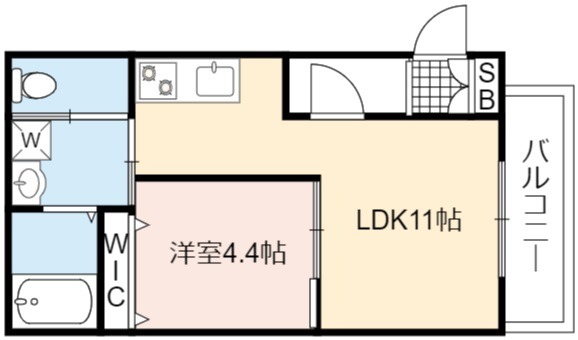 | 間取り詳細 | LDK 11畳 、 洋室 4.4畳 |