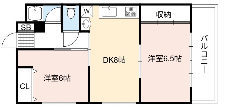 | 間取り詳細 | DK 8畳 、 洋室 6.5畳 、 洋室 6畳 |
