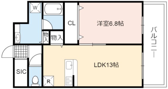 | 間取り詳細 | LDK 13畳 、 洋室 6.8畳 |