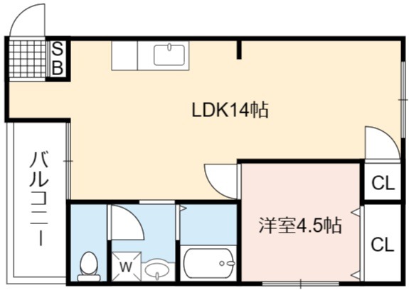| 間取り詳細 | LDK 14畳 、 洋室 4.5畳 |