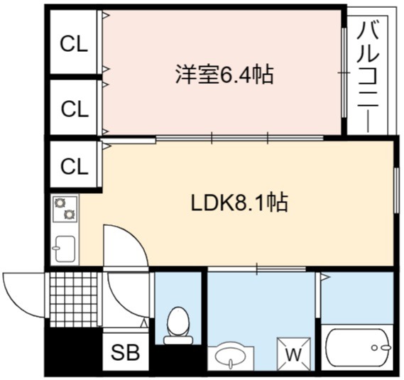 | 間取り詳細 | LDK 8.1畳 、 洋室 6.4畳 |