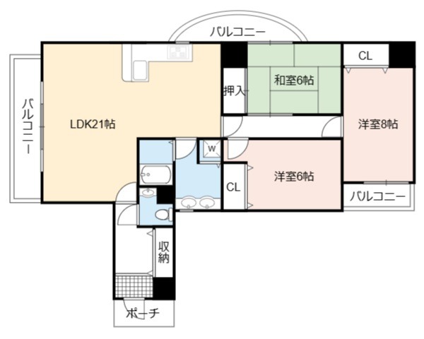 | 間取り詳細 | LDK 21畳 、 洋室 8畳 、 洋室 6畳 、 和室 6畳 |