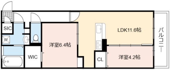 | 間取り詳細 | LDK 11.6畳 、 洋室 6.4畳 、 洋室 4.2畳 |