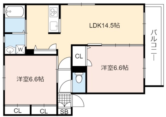 | 間取り詳細 | LDK 14.5畳 、 洋室 6.6畳 、 洋室 6.6畳 |