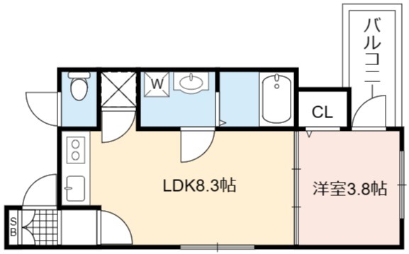 | 間取り詳細 | LDK 8.3畳 、 洋室 3.8畳 |