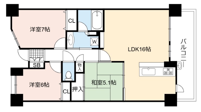 | 間取り詳細 | LDK 16畳 、 洋室 7畳 、 洋室 6畳 、 和室 5.1畳 |