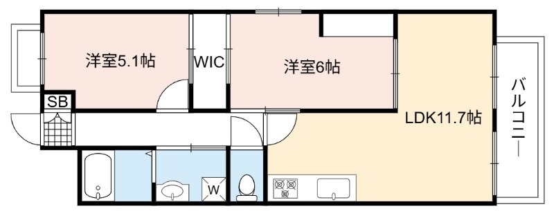 | 間取り | 2LDK | 面積 | 51㎡ |
