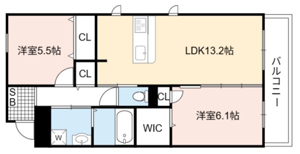 | 間取り詳細 | LDK 13.2畳 、 洋室 6.1畳 、 洋室 5.5畳 |