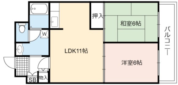 | 間取り詳細 | LDK 11畳 、 洋室 6畳 、 和室 6畳 |