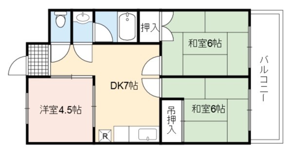 | 間取り詳細 | DK 7畳 、 和室 6畳 、 和室 6畳 、 洋室 4.5畳 |