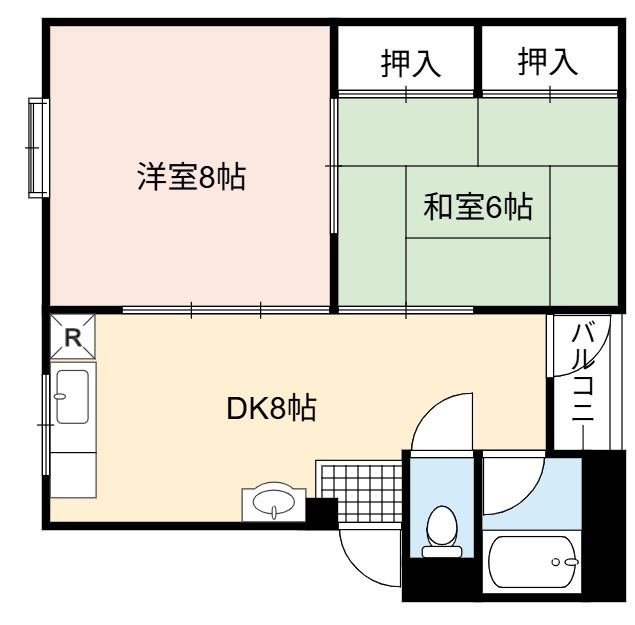 | 間取り詳細 | DK 8畳 、 洋室 8畳 、 和室 6畳 |