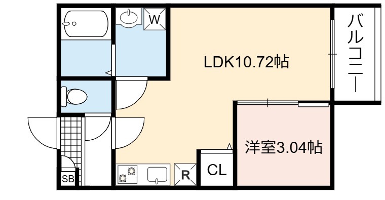 | 間取り詳細 | LDK 10.72畳 、 洋室 3.04畳 |