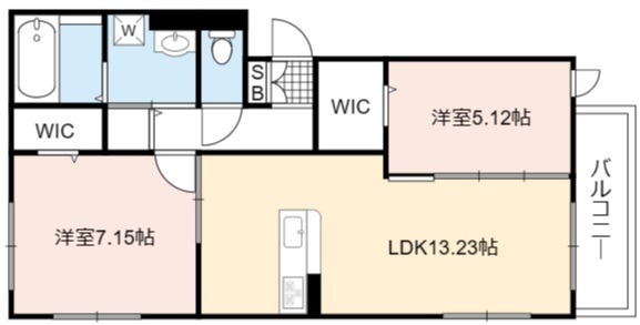 | 間取り詳細 | LDK 13.23畳 、 洋室 7.15畳 、 洋室 5.12畳 |