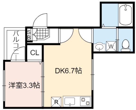 | 間取り詳細 | DK 6.7畳 、 洋室 3.3畳 |