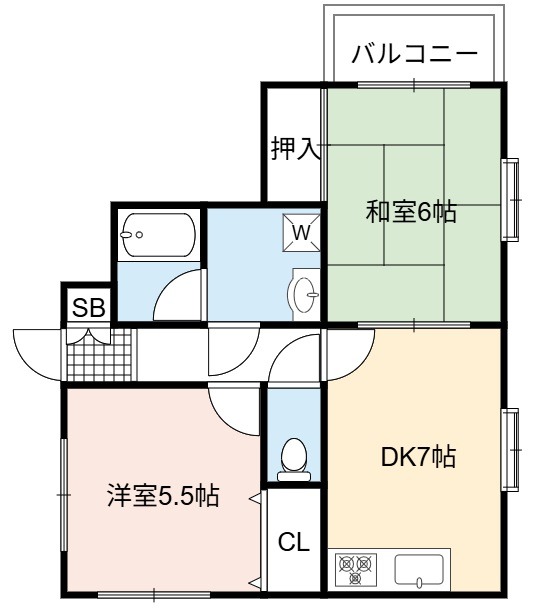 | 間取り詳細 | DK 7畳 、 和室 6畳 、 洋室 5.5畳 |