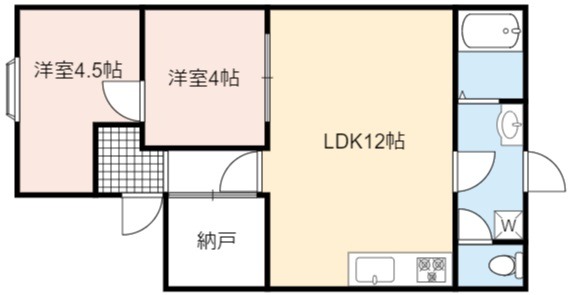 | 間取り詳細 | LDK 12畳 、 洋室 4.5畳 、 洋室 4畳 |
