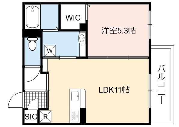 | 間取り詳細 | LDK 11.1畳 、 洋室 5.3畳 |