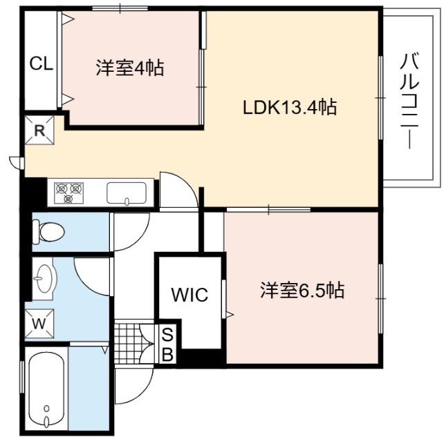 | 間取り詳細 | LDK 13.4畳 、 洋室 6.5畳 、 洋室 4畳 |