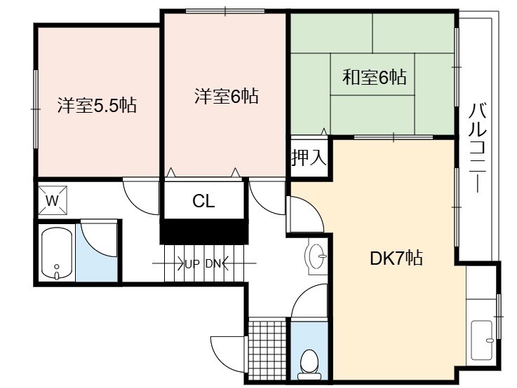 | 間取り詳細 | DK 7畳 、 洋室 6畳 、 和室 6畳 、 洋室 5.5畳 |