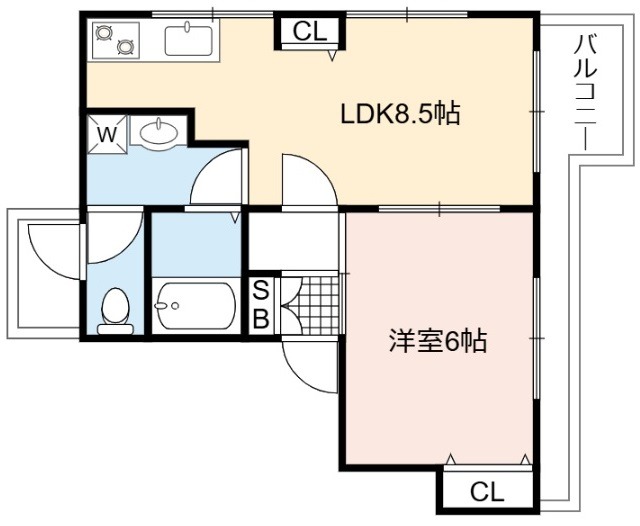 | 間取り詳細 | LDK 8.5畳 、 洋室 6畳 |