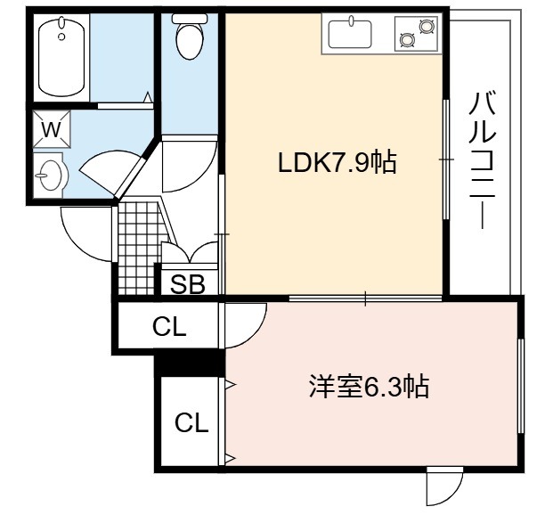 | 間取り詳細 | LDK 7.9畳 、 洋室 6.3畳 |