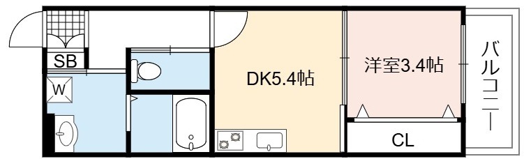 | 間取り詳細 | DK 5.4畳 、 洋室 3.4畳 |