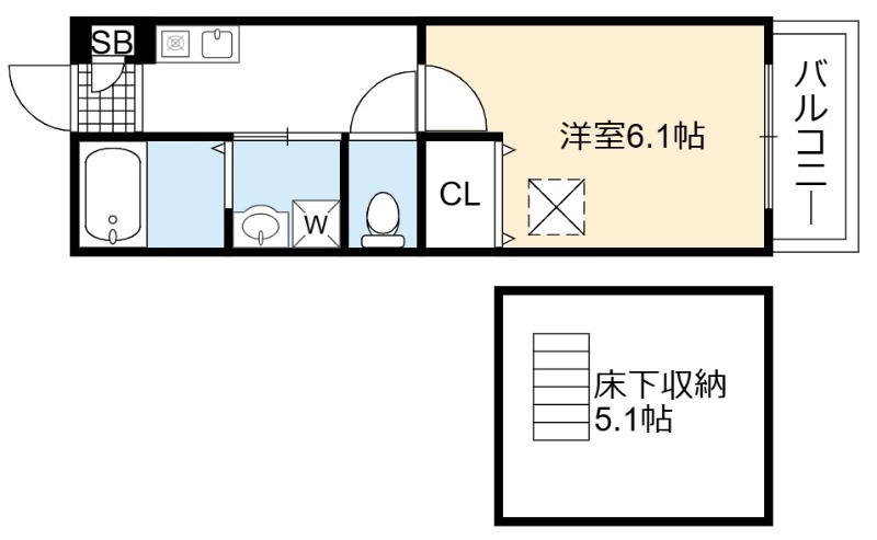 | 間取り | 1K | 面積 | 22.35㎡ |