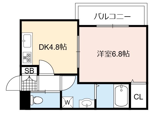 | 間取り詳細 | DK 4.8畳 、 洋室 6.8畳 |