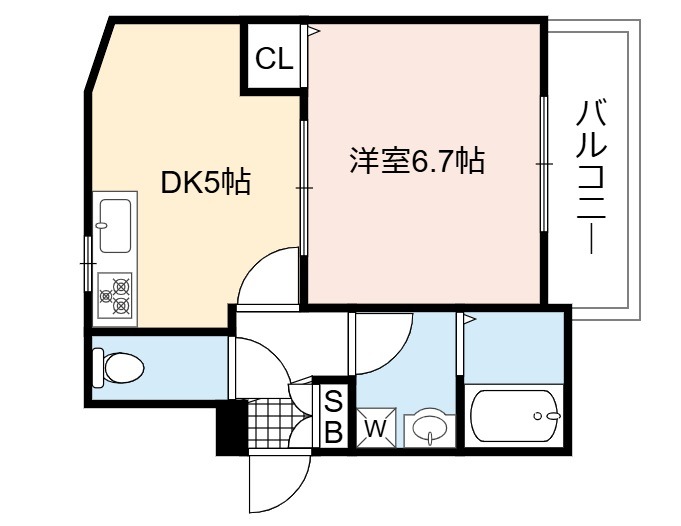 | 間取り詳細 | DK 5畳 、 洋室 6.7畳 |