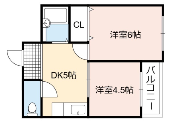 | 間取り詳細 | DK 5畳 、 洋室 6畳 、 洋室 4.5畳 |