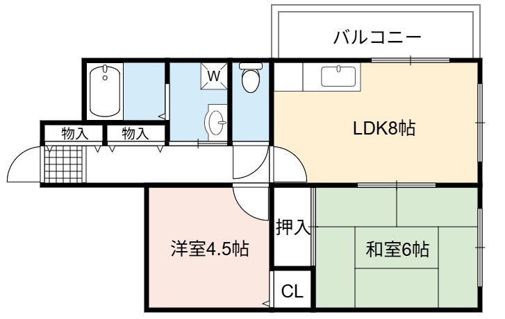 | 間取り詳細 | LDK 8畳 、 和室 6畳 、 洋室 4.5畳 |