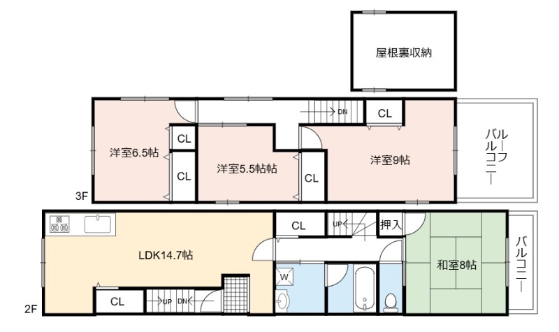 | 間取り詳細 | LDK 14.7畳 、 洋室 9畳 、 和室 8畳 、 洋室 6.5畳 、 洋室 5.5畳 |