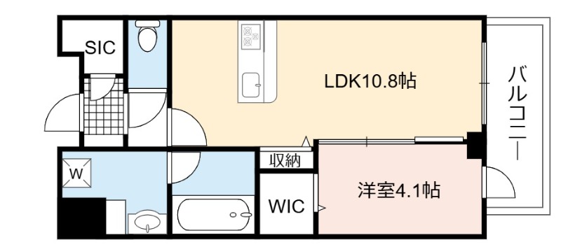 | 間取り詳細 | LDK 10.8畳 、 洋室 4.1畳 |
