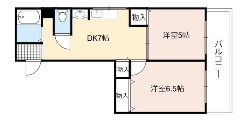| 間取り詳細 | DK 7畳 、 洋室 6.5畳 、 洋室 5畳 |