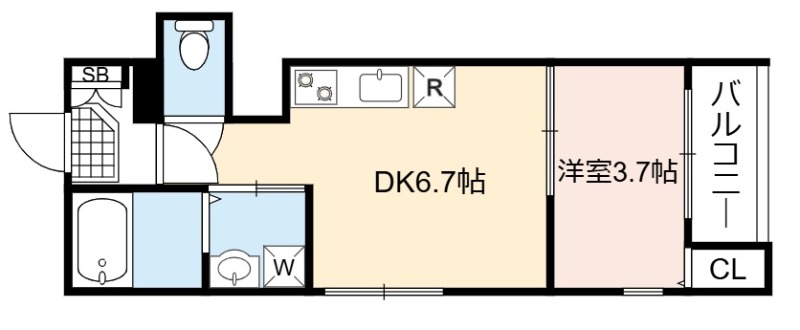 | 間取り詳細 | DK 6.7畳 、 洋室 3.7畳 |