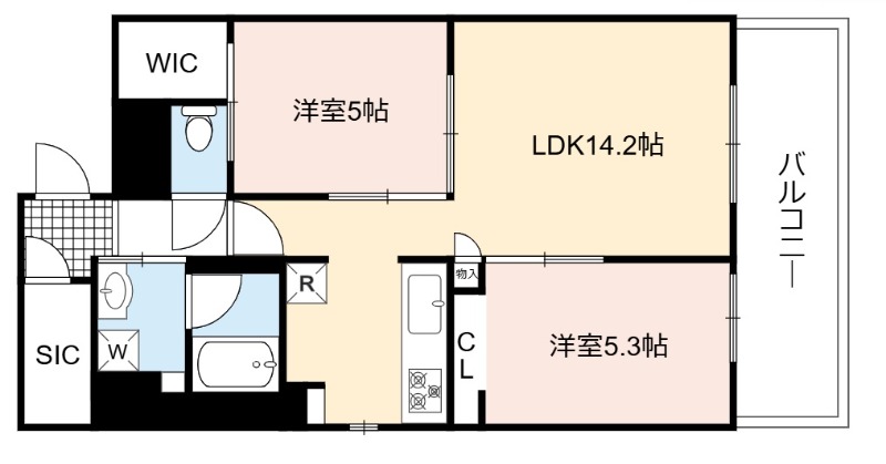 | 間取り詳細 | LDK 14.2畳 、 洋室 5.3畳 、 洋室 5畳 |