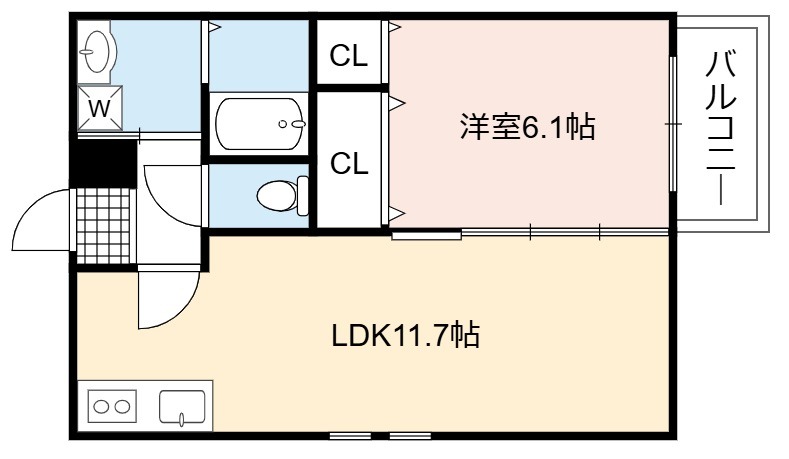 | 間取り詳細 | LDK 11.7畳 、 洋室 6.1畳 |
