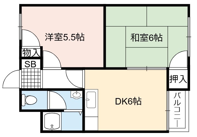 | 間取り詳細 | DK 6畳 、 和室 6畳 、 洋室 5.5畳 |