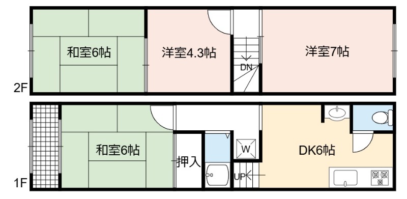 洋室 7畳 和室 6畳 和室 6畳 洋室 4.3畳 |