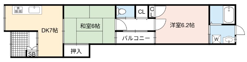 | 間取り詳細 | DK 7畳 、 洋室 6.2畳 、 和室 6畳 |
