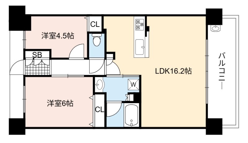 | 間取り詳細 | LDK 16.2畳 、 洋室 6畳 、 洋室 4.5畳 |