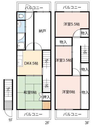 | 間取り詳細 | DK 4.5畳 、 洋室 6畳 、 和室 6畳 、 洋室 5.5畳 、 洋室 3.5畳 |