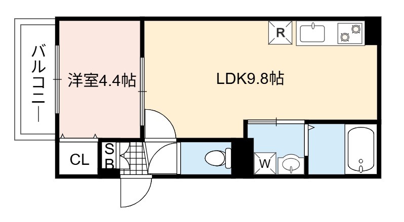 | 間取り詳細 | LDK 9.8畳 、 洋室 4.4畳 |