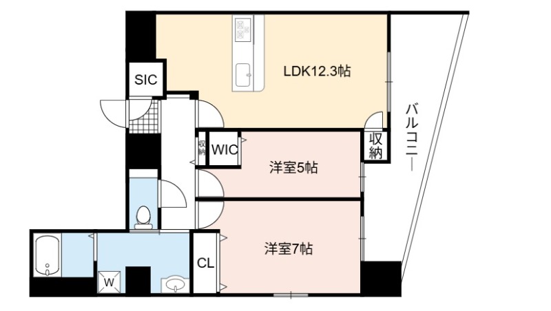 | 間取り詳細 | LDK 12.3畳 、 洋室 7畳 、 洋室 5畳 |