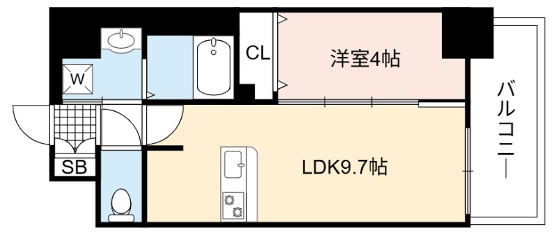 | 間取り詳細 | LDK 9.7畳 、 洋室 4畳 |