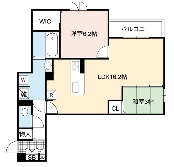 | 間取り詳細 | LDK 16.2畳 、 洋室 6.2畳 、 和室 3.1畳 |