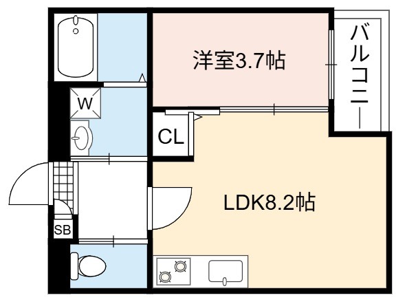 | 間取り詳細 | LDK 8.2畳 、 洋室 3.7畳 |