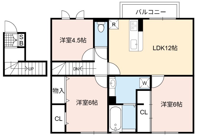 | 間取り詳細 | LDK 12畳 、 洋室 6畳 、 洋室 6畳 、 洋室 4.5畳 |