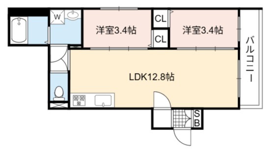 | 間取り詳細 | LDK 12.8畳 、 洋室 3.4畳 、 洋室 3.4畳 |