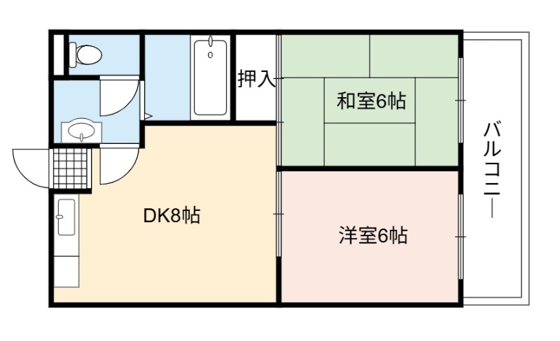 | 間取り詳細 | DK 8畳 、 洋室 6畳 、 和室 6畳 |
